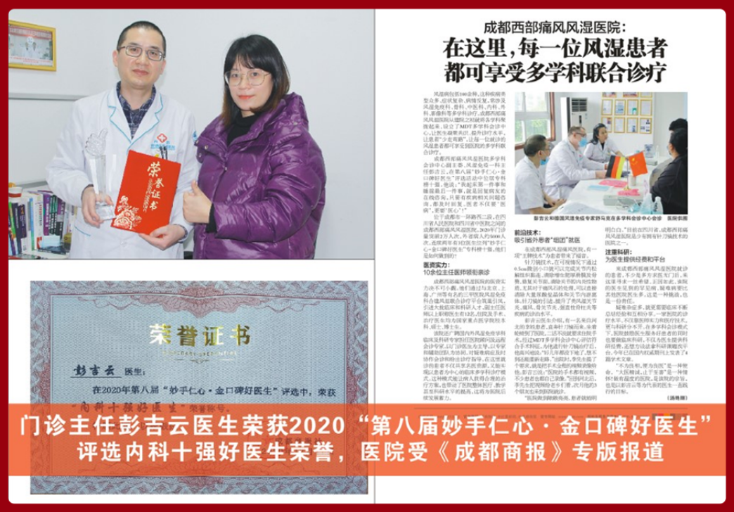 毕业于成都中医药大学,从医20余年以来,积累了丰富的临床经验。先后就职于四川省人民医院、江苏省无锡市滨湖区人民医院等,并在北京协和医学院和四川省人民医院进修肾内科和风湿免疫科。参与我院中医、针灸推拿、骨伤康复理疗中心建设和类风湿MDT诊疗中心筹建工作。熟悉掌握风湿免疫科常见病、多发病临床诊疗路径及处理方案,有较高的专业知识及素养,对关节炎疑难杂症有独特见解。,并于2020年荣获第八届“妙手仁心·金口碑好医生”十强好医生。